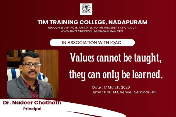 Welcome to TIM Training College Nadapuram. As Principal, I am delighted to lead an institution that is dedicated to shaping the future of education. Our college is committed to fostering a community of learners who are passionate reflective and committed to excellence.